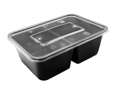กล่องอาหาร Easy Life 2 ช่องสีดำ ขนาด 1000 มล. (2F1000-B) / 25ชิ้น*12แพ็ค